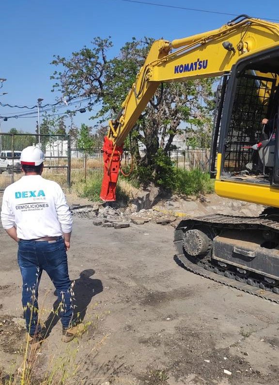 Los servicios de demoliciones incluyen demoliciones manuales y a máquina con excavadoras con balde, martillo hidráulico y/o cizalla. Además, Dexa Chile se encarga de la gestión SEREMI DE SALUD para desratizaciones previo a la demolición, gestión y tramitación de permisos municipales de demolición, gestión de suspensión y corte de suministros básicos como luz, agua y gas, y retiro de escombros a botaderos autorizados.